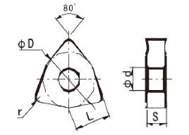| VCGT160404-LH-DP21200 | LH | 16.5 | 9.525 | 4.76 | 4.4 | 0.4 | S | Finishing – Medium |